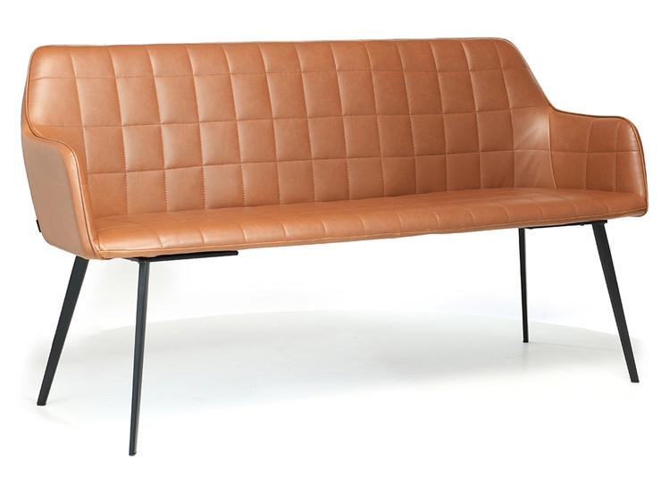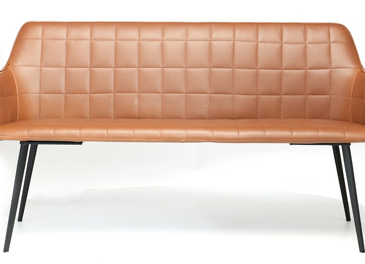 Good things come in three: besides the chair and armchair, the model Romy is now also available as a sofa. As with the armchair Romy, the quilted backrest front is a real eye-catcher. The two-and-a-half seater - which is available in dining table and lounge height - has a comfortable seat shell, which sits on a delicate-looking yet stable frame made of black powder-coated steel. The high-quality and durable artificial leather cover Kavita is available in cognac and dark brown.Product Code