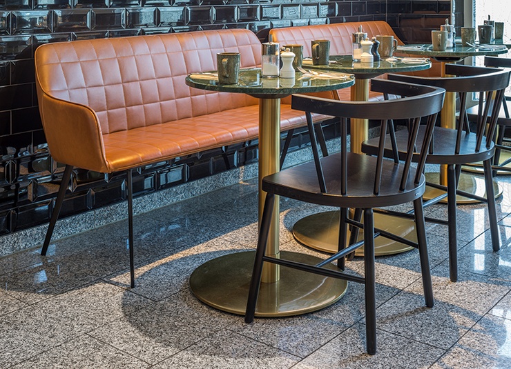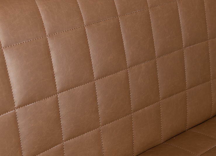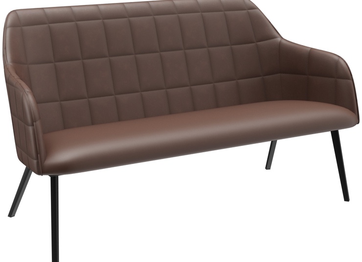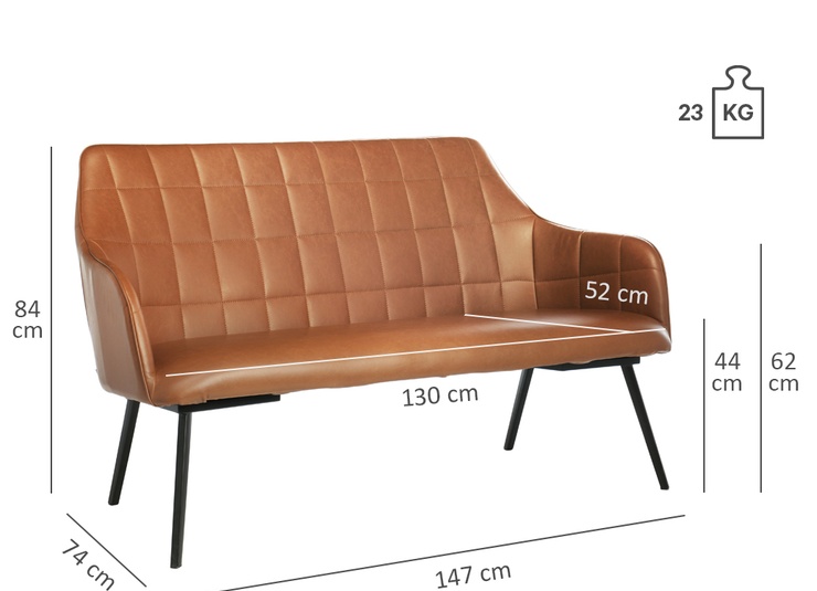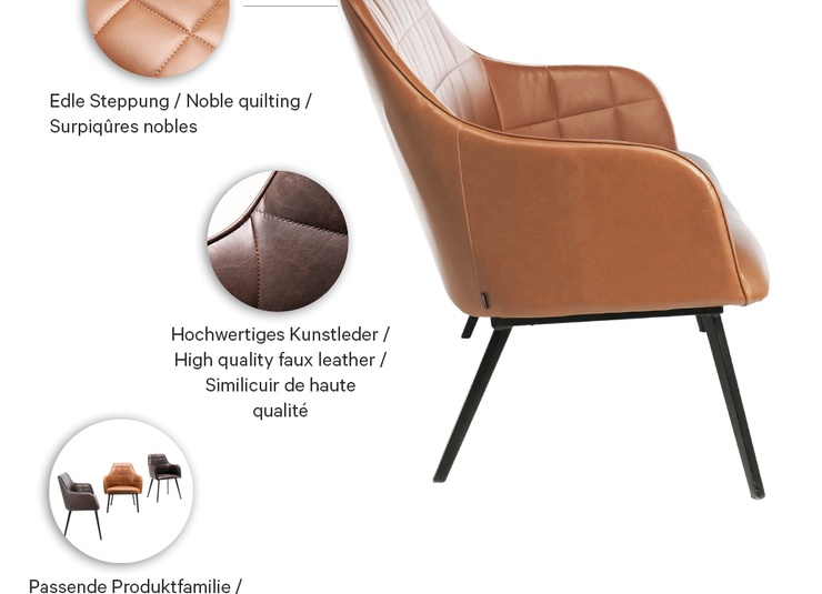 Good things come in three: besides the chair and armchair, the model Romy is now also available as a sofa. As with the armchair Romy, the quilted backrest front is a real eye-catcher. The two-and-a-half seater - which is available in dining table and lounge height - has a comfortable seat shell, which sits on a delicate-looking yet stable frame made of black powder-coated steel. The high-quality and durable artificial leather cover Kavita is available in cognac and dark brown.Product Code