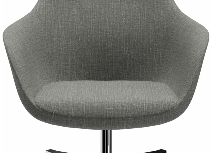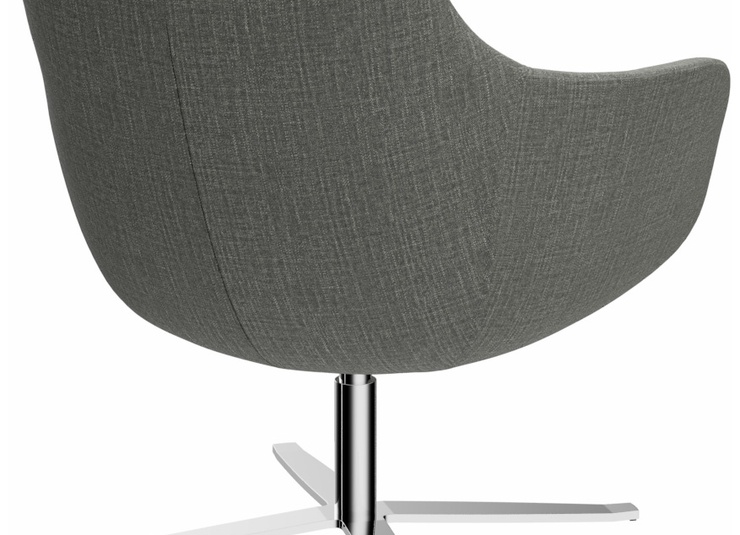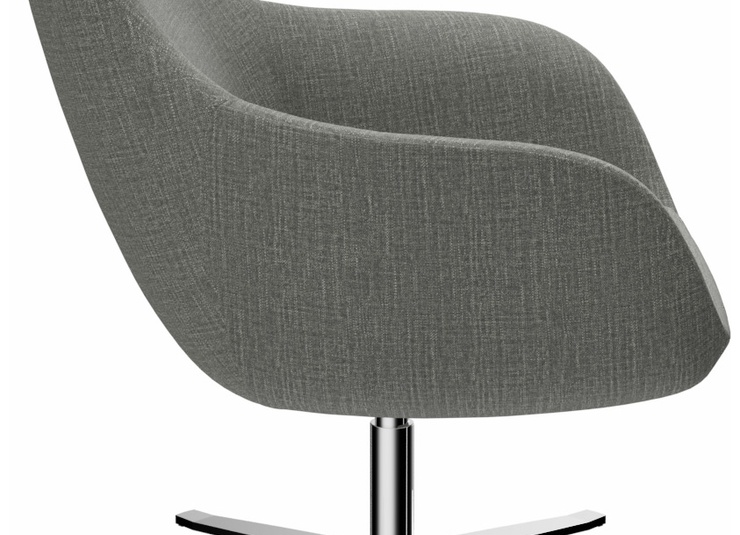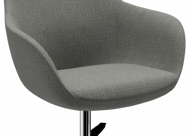 The upholstered armchair Felia is compact and comfortable. The steel substructure, coated with moulded foam, rests on a rotating chrome-plated steel base. Various fabrics are available for the upholstery.