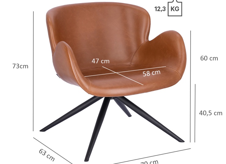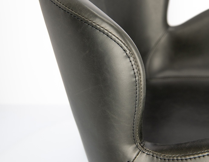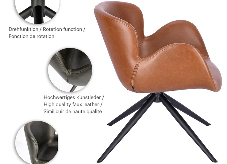 Through luxury and coziness the lounge chair "Sabatina" is distinguished and transforms your location into an oasis of relaxation. With its timeless design, the chair — featuring a generously padded seat and an ergonomically shaped backrest — blends seamlessly into any interior. The swivel mechanism completes the successful combination of an upholstered molded-wood shell and a powder-coated base with its tapering steel legs. The seat shell is covered in robust and durable artificial leather.- Swivel function