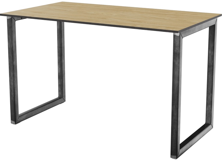 The self-confident look: our Rickon dining table in an industrial style. The robust, rectangular steel frame – transparently lacquered to preserve its natural appearance – offers stable support and a confident design. The tabletop can be customized with high-pressure laminate panels (Compact Slim), solid wood, or various other tabletop materials. Ideally suited as a dining table for indoor areas in restaurants and canteens. The Rickon dining table is also available in a standing table version – matching as a product family.- suitable for all rectangular tabletop formats