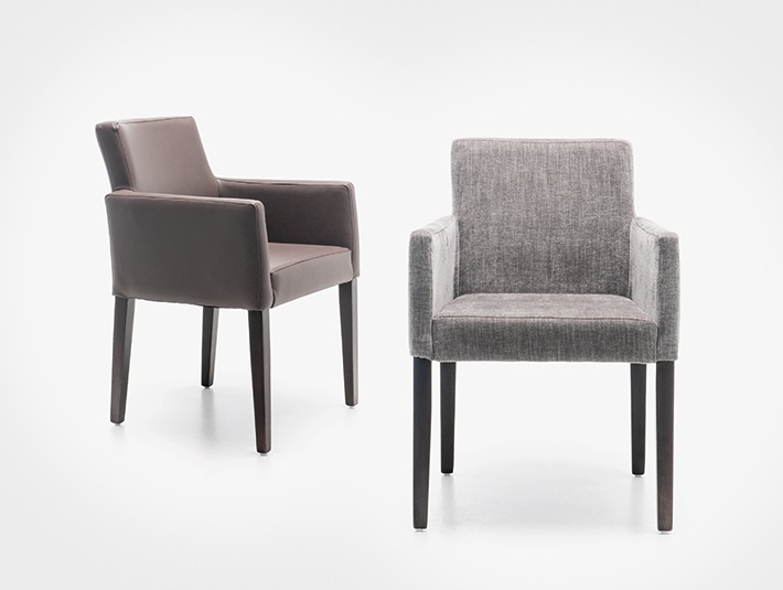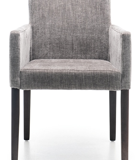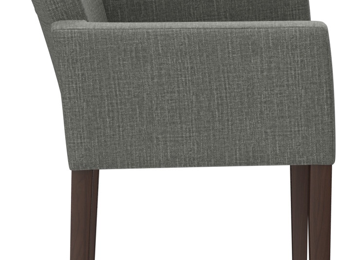 The fully upholstered armchair Narkin, designed for professional hospitality use, offers maximum comfort thanks to its inclined backrest and high-quality seat padding. Its solid beech wood frame, stained in walnut color, provides stability and an elegant appearance. The continuous padding ensures a comfortable seating experience and a sophisticated look. A wide range of fabrics from the upholstery collection allows for individual customization according to your interior design concept. Perfectly suited for restaurants, hotels, and bars with high standards of quality and design.Product Code