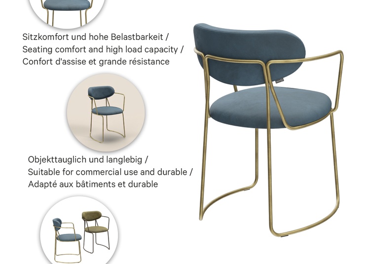 Nivio interprets mid-century design in a way that is both modern and timeless. The curved, delicate steel frame gives it an elegant lightness while ensuring high stability and load-bearing capacity. The soft lines and ergonomic shape provide comfort and style in any setting. Two easy-care, durable covers with 100,000 abrasion cycles ensure lasting quality – even with intensive use. Ideal for sophisticated contract environments – from gastronomy and hospitality to modern work and lounge areas.- Modern mid-century design: Delicate steel frame and soft lines create a timeless, elegant appearance