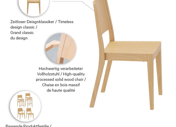A real all-rounder of a chair: the Quin model is made of oak or beech and is available black or walnut. Thanks to its high quality of workmanship and strong lines, it always makes a good impression in nearly all ways of ambience. Quin is available as a chair with or without armrests and as a barstool – half or full-height, with or without stainless steel footrest. All versions can be fitted with a seat cushion and/or backrest, availablewith a upholstered seat. The chair is also stackable.Product Code