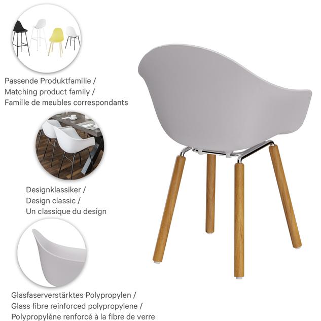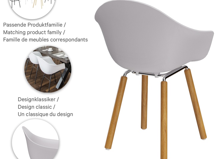 TA - available as a chair, armchair and barstool - is the elegant answer to the demand for ergonomics and aesthetics. The design is inspired by the style of the 50s and meets today's zeitgeist in its purist implementation. The seat shell made of glass fibre-reinforced polypropylene is available in black, white, red or yellow. The frame is made of chromed steel or black powder-coated steel. In addition, the frame can be chosen in natural lacquered oak or black stained and lacquered oak.Product Code