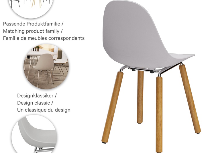 TA - available as a chair, armchair and barstool - is the elegant answer to the demand for ergonomics and aesthetics. The design is inspired by the style of the 50s and meets today's zeitgeist in its purist implementation. The seat shell made of glass fibre-reinforced polypropylene is available in black, white, red or yellow. The frame is made of chromed steel or black powder-coated steel. In addition, the frame can be chosen in natural lacquered oak or black stained and lacquered oak.Product Code