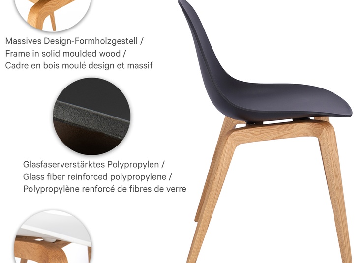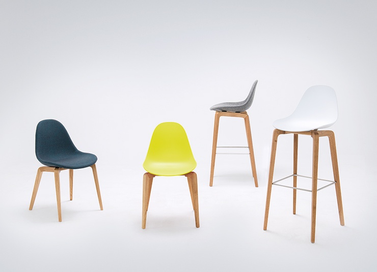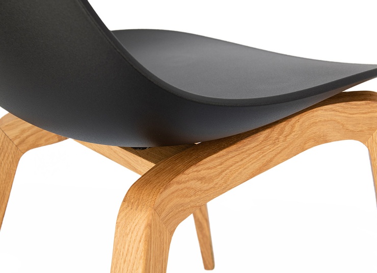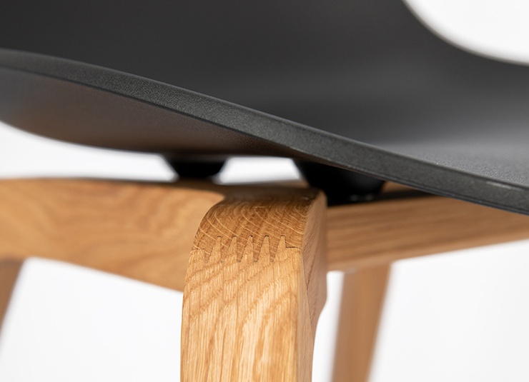 Nature meets high-tech materials: the chair Tamo gets its look from the combination of a wooden frame in oak and a softly curved seat made of glass fibre reinforced polypropylene in black or white. The bar stool has a footrest made of stainless steel.Product Code