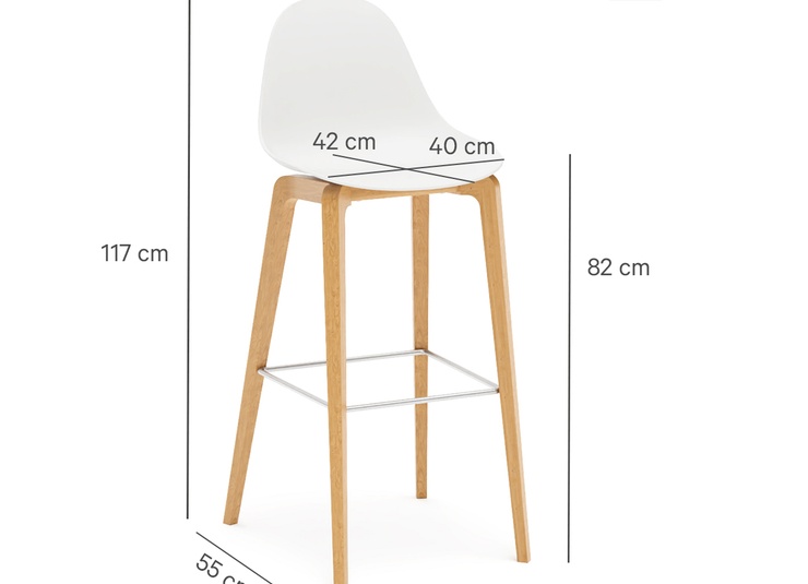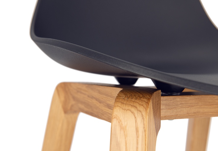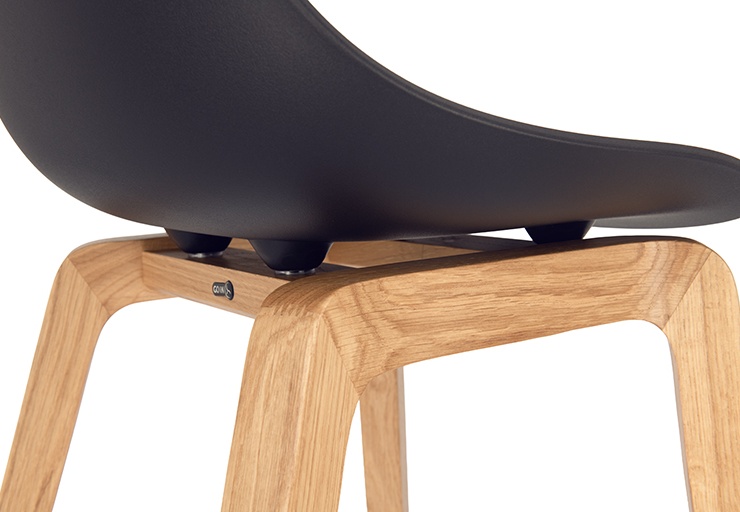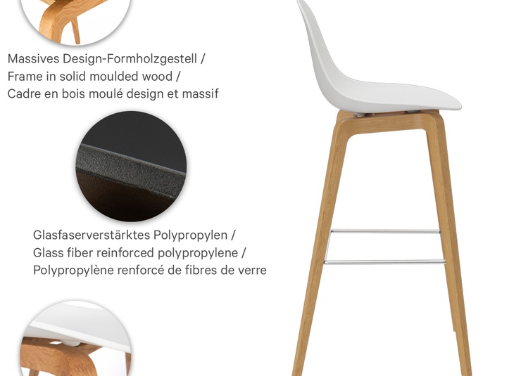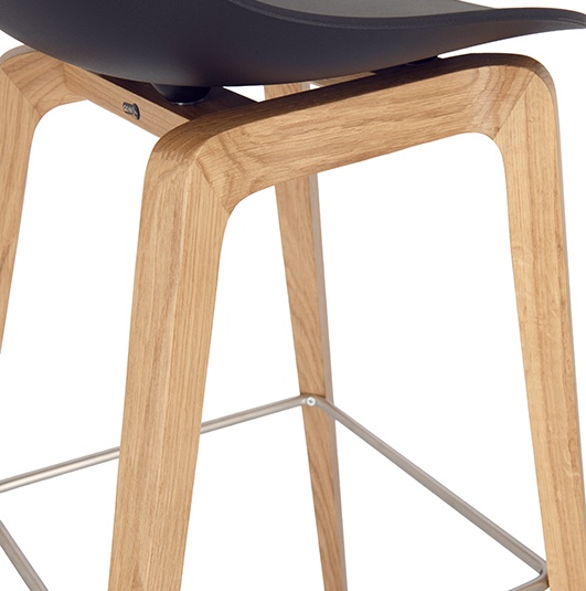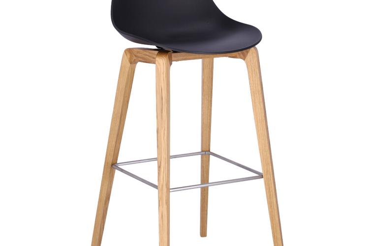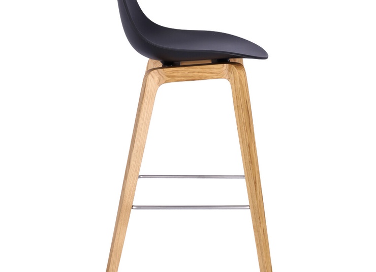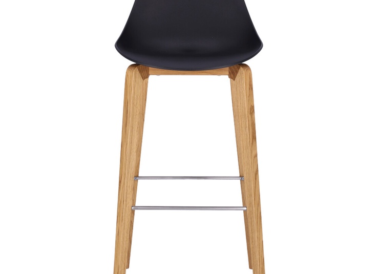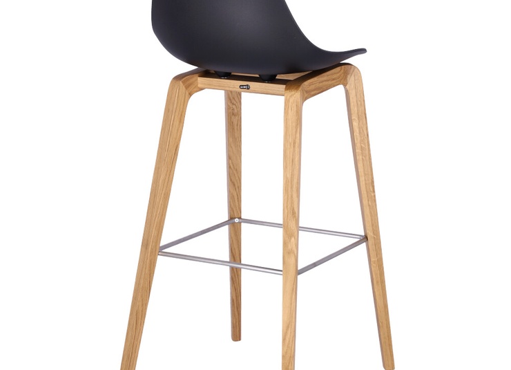 Nature meets high-tech materials: the chair Tamo gets its look from the combination of a wooden frame in oak and a softly curved seat made of glass fibre reinforced polypropylene in black or white. The bar stool has a footrest made of stainless steel.Product Code