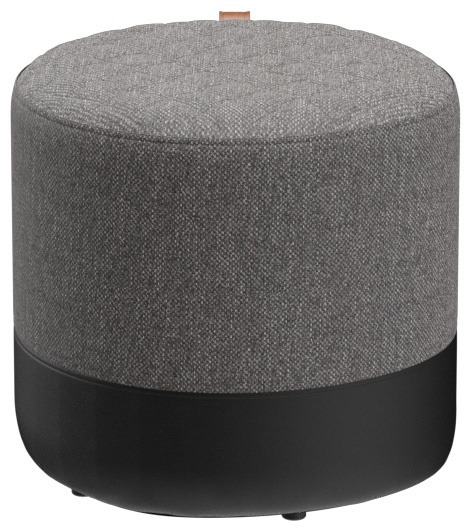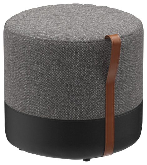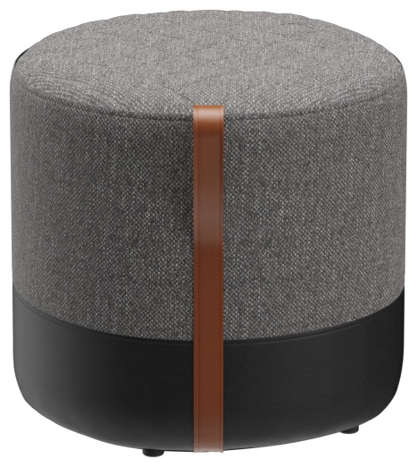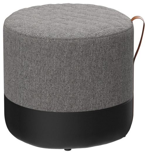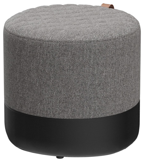 The Panora stool with a sturdy wooden substructure is soft and comfortable, with a quilted seat and a cognac-colored leather carrying strap. Panora is part of the fabric collection and is available in all materials in the collection. The lower part of the stool is always upholstered in black faux leather.Product Code