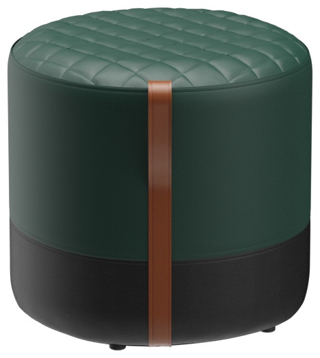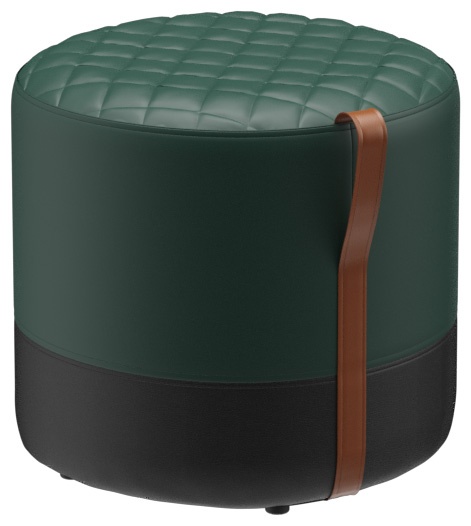 The Panora stool with a sturdy wooden substructure is soft and comfortable, with a quilted seat and a cognac-colored leather carrying strap. Panora is part of the fabric collection and is available in all materials in the collection. The lower part of the stool is always upholstered in black faux leather.Product Code