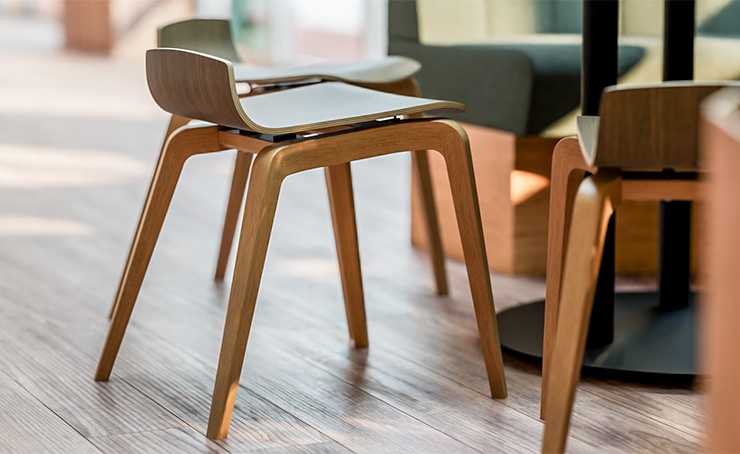 The professional bar stool Yoko in proven GO IN contract quality combines minimalist design with high everyday usability and fits anywhere from seminar areas to wine bars. The seat shell made of laminate-coated molded wood is available in three decors and brings a clear, modern line to different interior concepts. For the metal frame, Yoko offers maximum design freedom with steel powder-coated in black, chrome-plated steel, or matte brushed stainless steel. Despite its delicate look, the bar stool is extremely robust, suitable for contract use, and designed for intensive use in gastronomy and hospitality. Particularly practical in operation: the metal frame is stackable and enables flexible use of space as well as space-saving storage. In addition to the bar stool (92 cm), Yoko is also available as a stool (56 cm) – ideal for a consistent interior concept.- Versatile planning: Three frame versions and three wood decors fit a wide variety of contract concepts