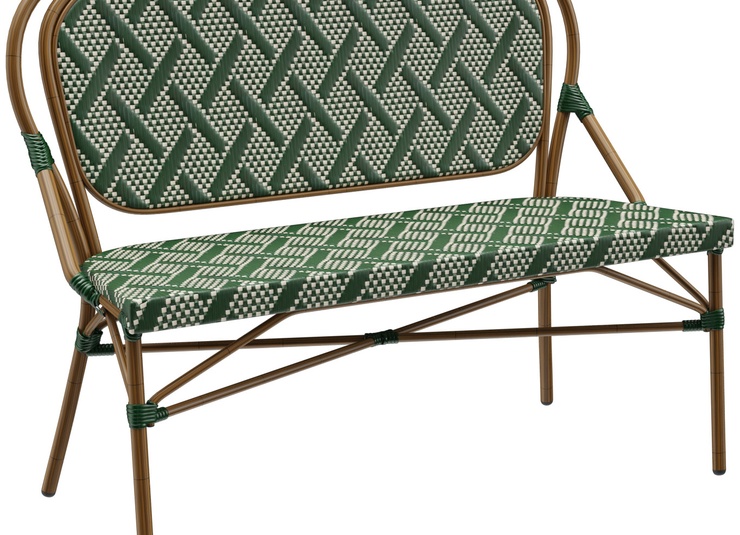 The stackable Marco model delivers Parisian brasserie flair at first glance – with its characteristic shape and harmonious color scheme, it immediately reads as a true café statement in hospitality settings. Designed for professional use, it impresses with strong value for money and materials that perform reliably both outdoors and indoors: rattan-look aluminum meets hand-woven nylon mesh. The weave does not absorb moisture, dries quickly and remains pleasantly easy to maintain. UV-resistant, weatherproof components ensure that Marco continues to look good even in sun, rain and high-traffic environments. Whether as a chair with or without armrests, a 2-seater bench at dining table height, an armchair or a 2-seater element at lounge height – Marco adapts flexibly to your concept. And because all versions are stackable, handling stays just as relaxed as the look.- Parisian flair: Brasserie look that attracts guests and keeps them seated longer