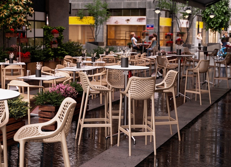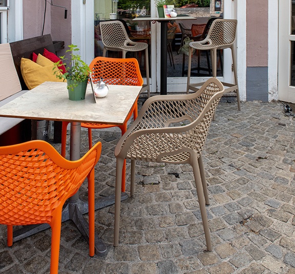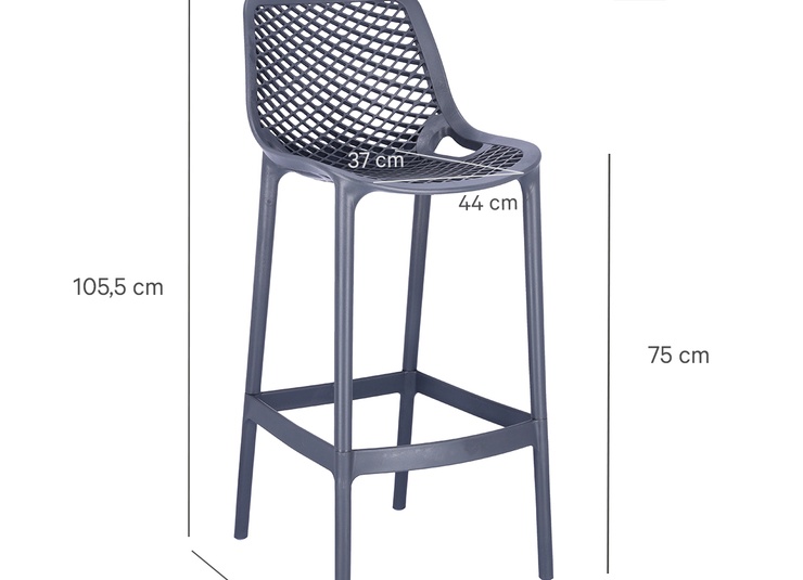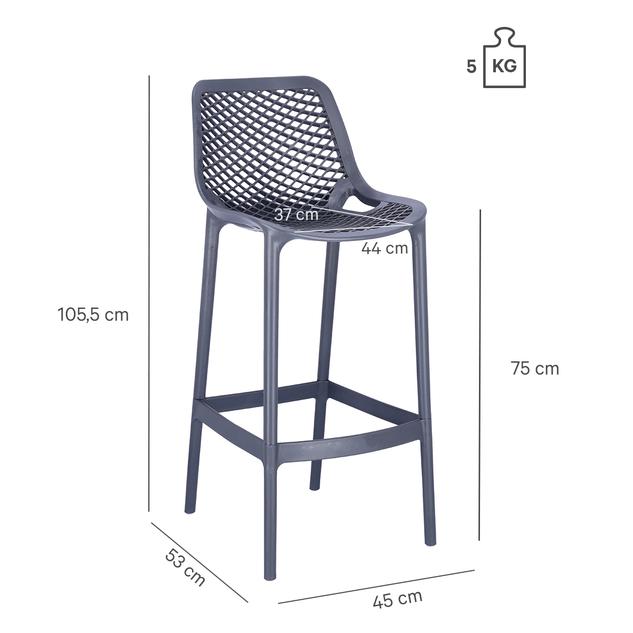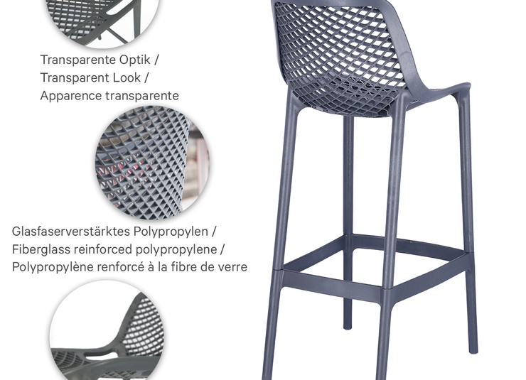 The graphic appearance and the transparent look distinguish the Emilia bar stool. It is made of glass fibre-reinforced polypropylene and is available in many colours.Product Code