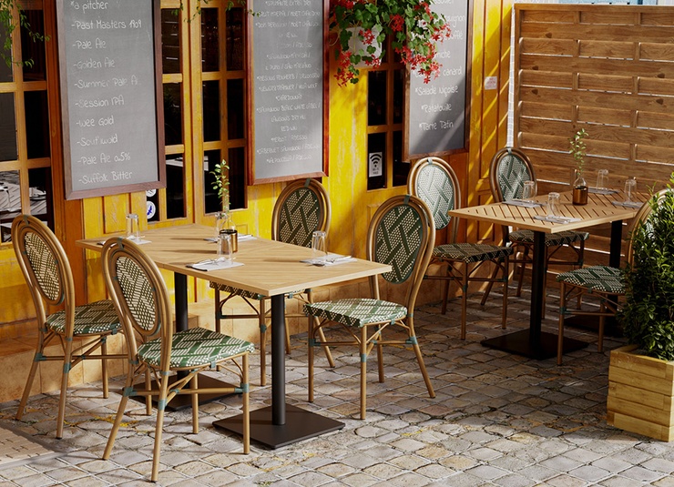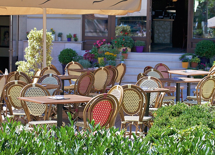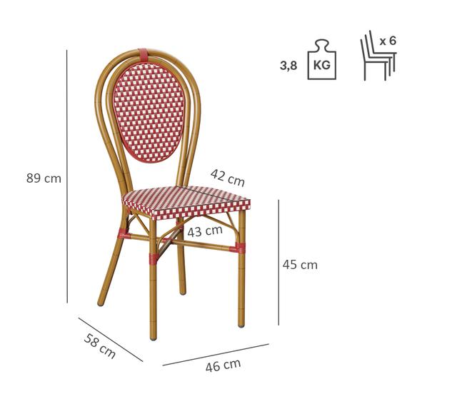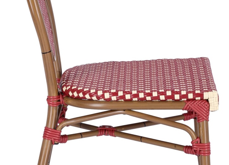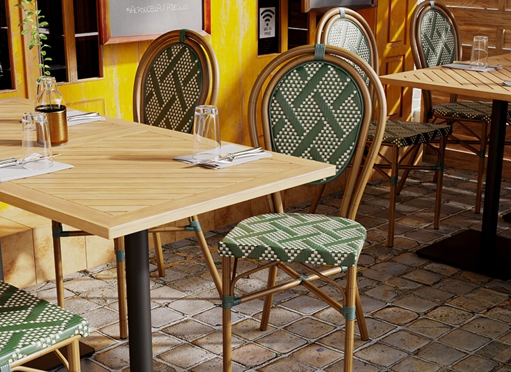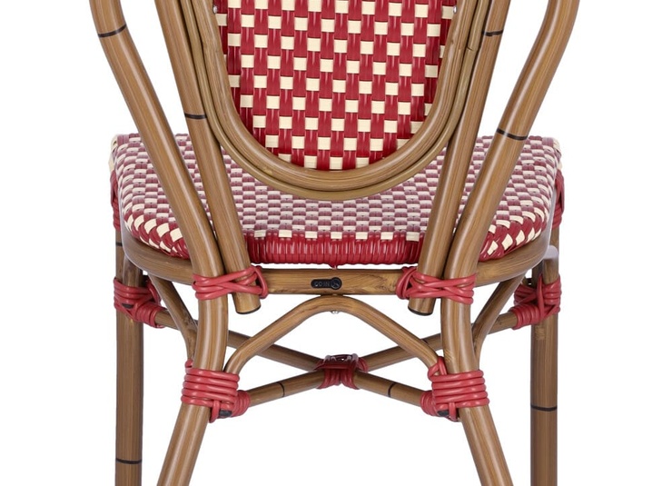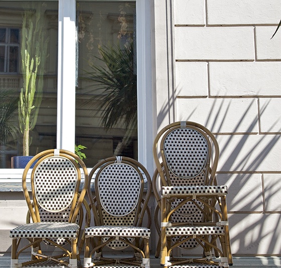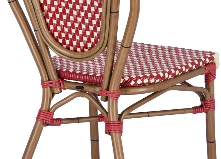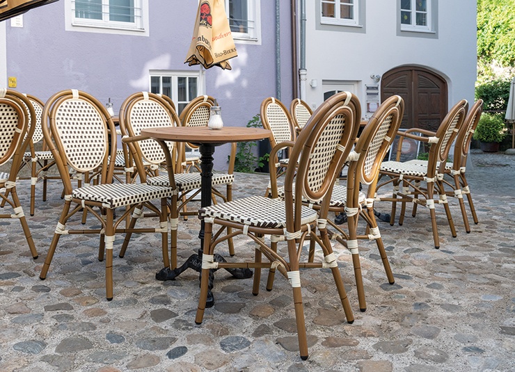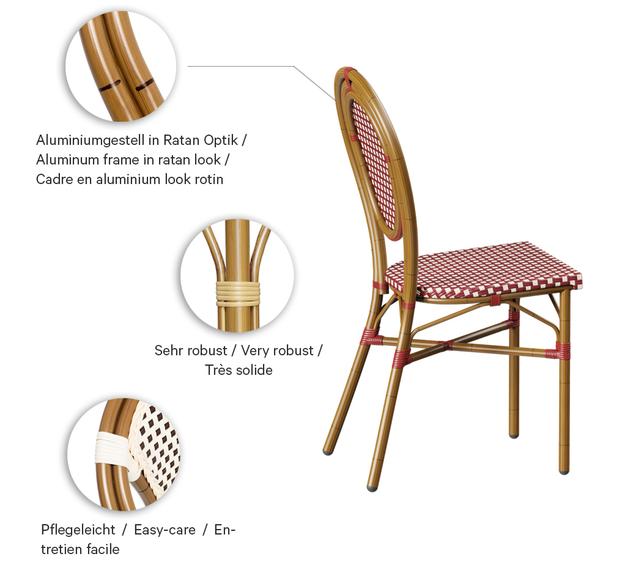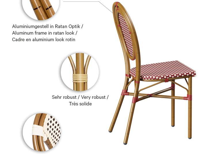 The stackable Marco model delivers Parisian brasserie flair at first glance – with its characteristic shape and harmonious color scheme, it immediately reads as a true café statement in hospitality settings. Designed for professional use, it impresses with strong value for money and materials that perform reliably both outdoors and indoors: rattan-look aluminum meets hand-woven nylon mesh. The weave does not absorb moisture, dries quickly and remains pleasantly easy to maintain. UV-resistant, weatherproof components ensure that Marco continues to look good even in sun, rain and high-traffic environments. Whether as a chair with or without armrests, a 2-seater bench at dining table height, an armchair or a 2-seater element at lounge height – Marco adapts flexibly to your concept. And because all versions are stackable, handling stays just as relaxed as the look.- Parisian flair: Brasserie look that attracts guests and keeps them seated longer