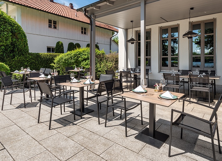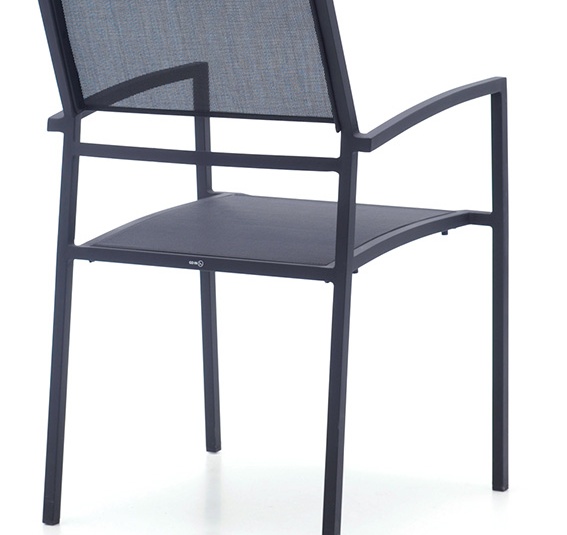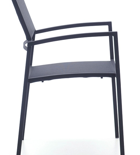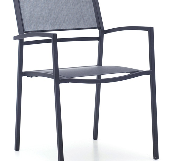 The stackable Toni chair has a light and modern look - a combination of black powder-coated steel and a technical outdoor fabric. It is available with or without armrests.Product Code