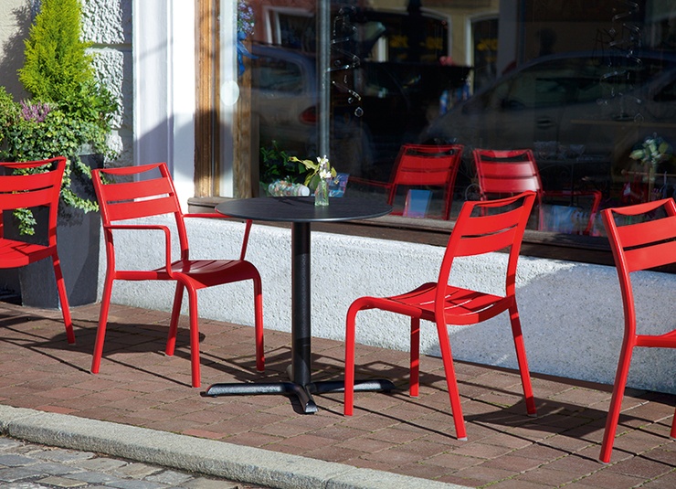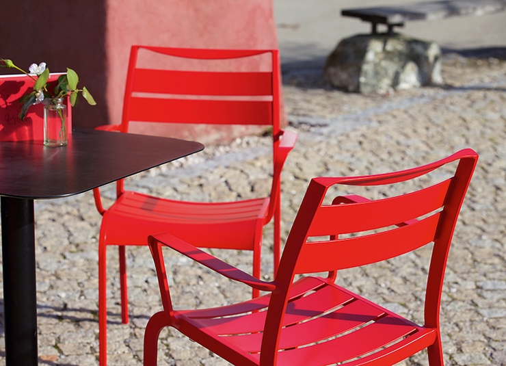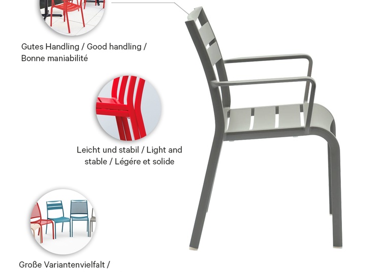 The stackable Herma chair is made of powder-coated aluminium and is available with or without armrests. It is a real trendsetter for outdoor spaces.Product Code