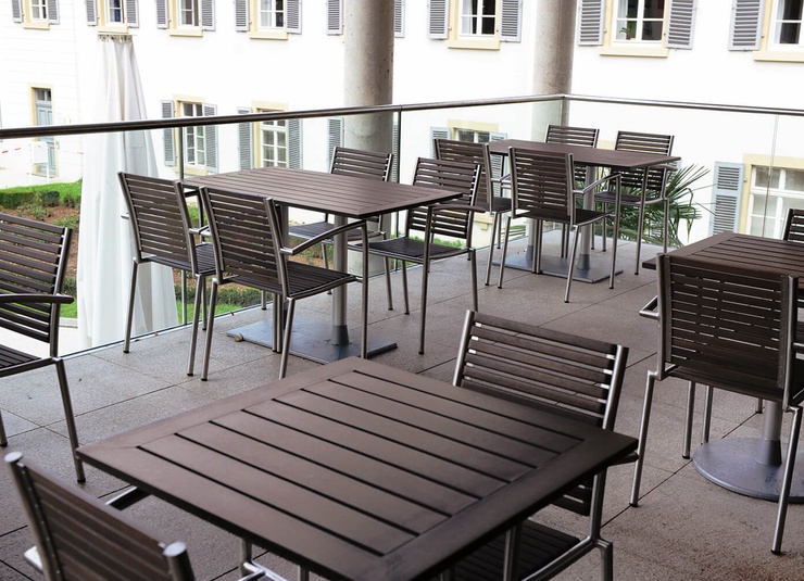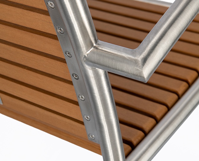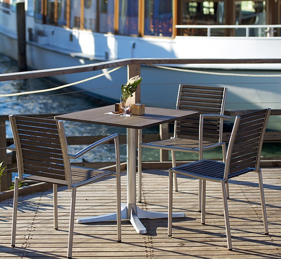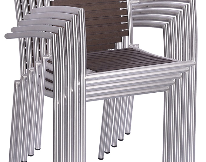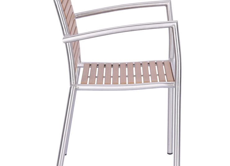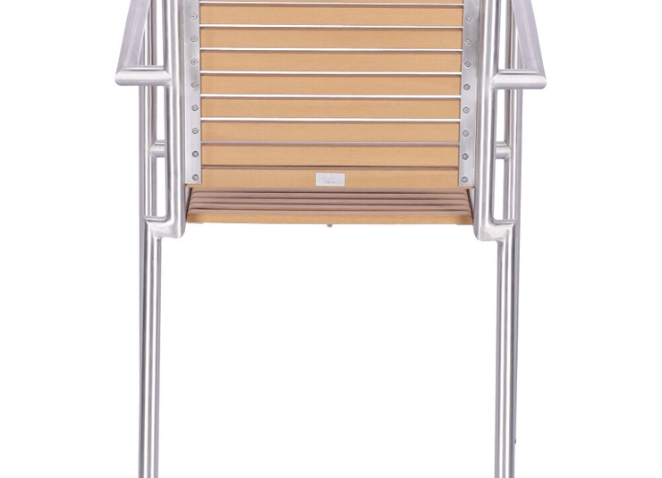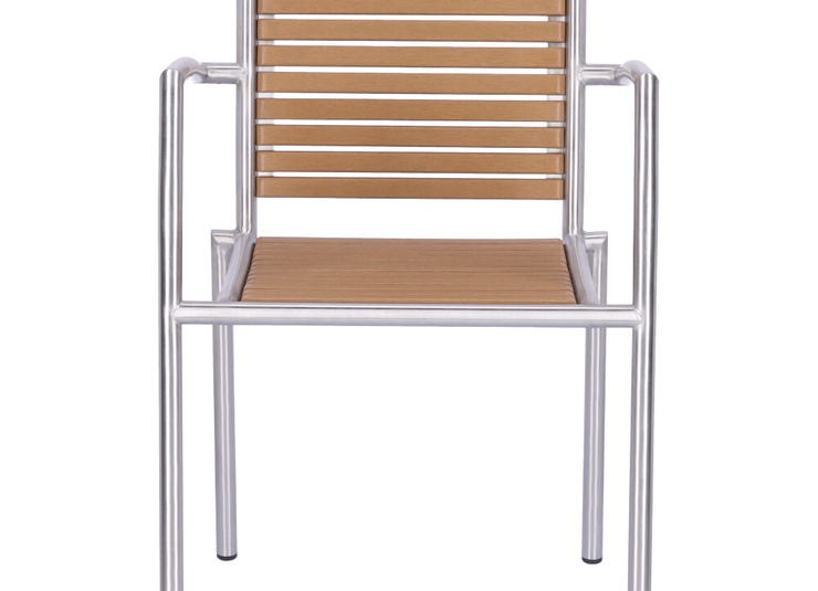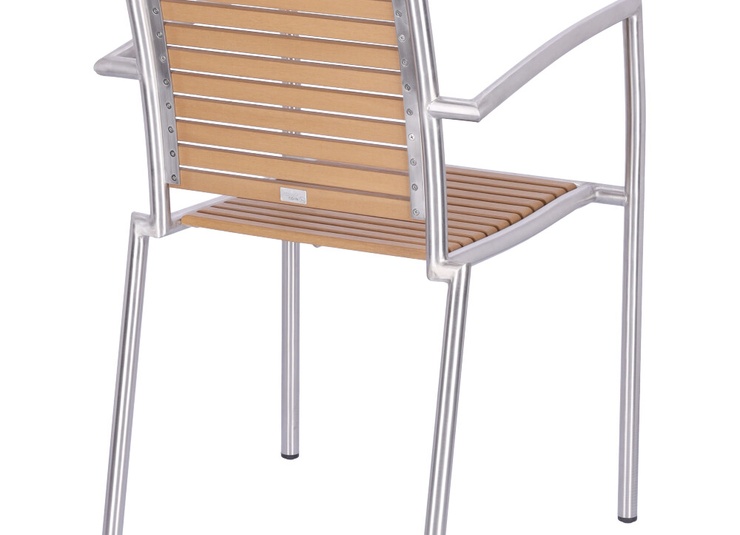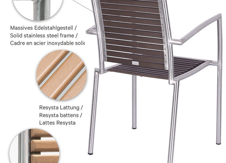 The stackable Ruben chair is elegant and low-maintenance thanks to the combination of matt brushed stainless steel and Resysta – a fibre-reinforced hybrid material in a wood effect finish.Product Code