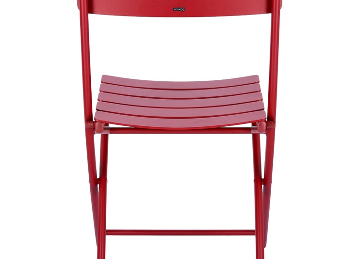 A splash of colour please! The lively beer garden set Baila is made of weather-resistant metal and includes a table and two folding chairs. The tables must be ordered separately from the chairs. The lightweight aluminium frame is powder-coated. Both the Baila chair and table are available in several colors. The set can be stored in a space-saving way when not in use.Product Code