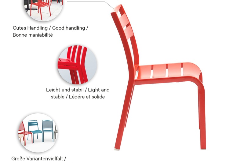 The stackable Herma chair is made of powder-coated aluminium and is available with or without armrests. It is a real trendsetter for outdoor spaces.Product Code