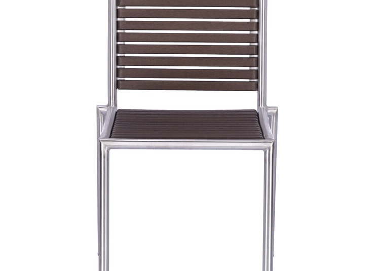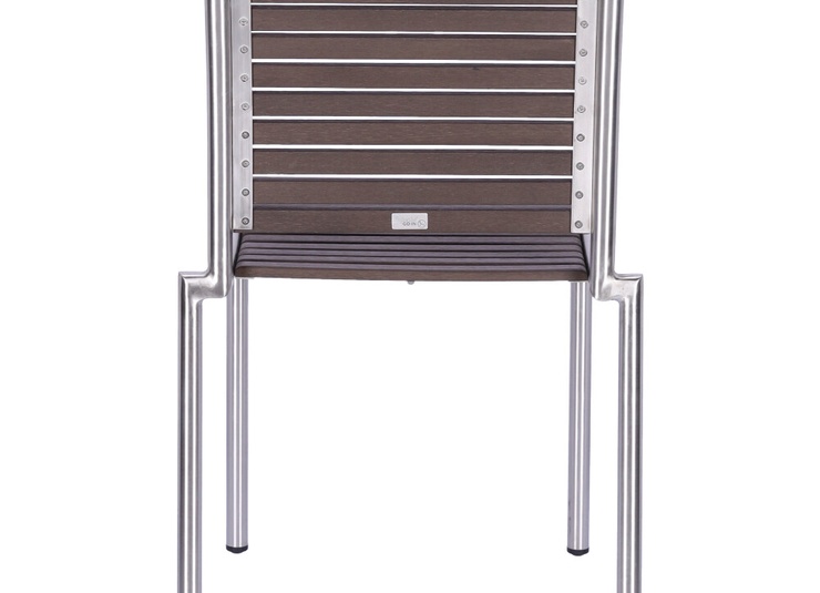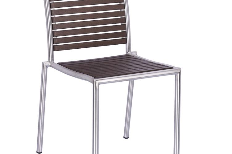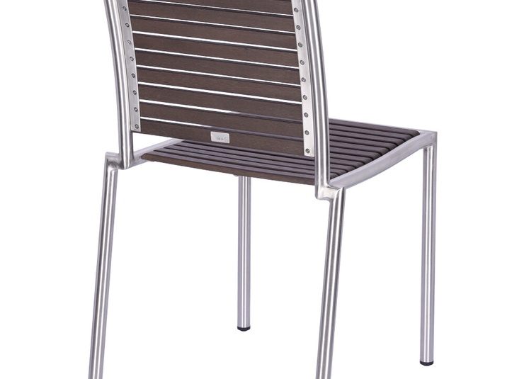 The stackable Ruben chair is elegant and low-maintenance thanks to the combination of matt brushed stainless steel and Resysta – a fibre-reinforced hybrid material in a wood effect finish.Product Code