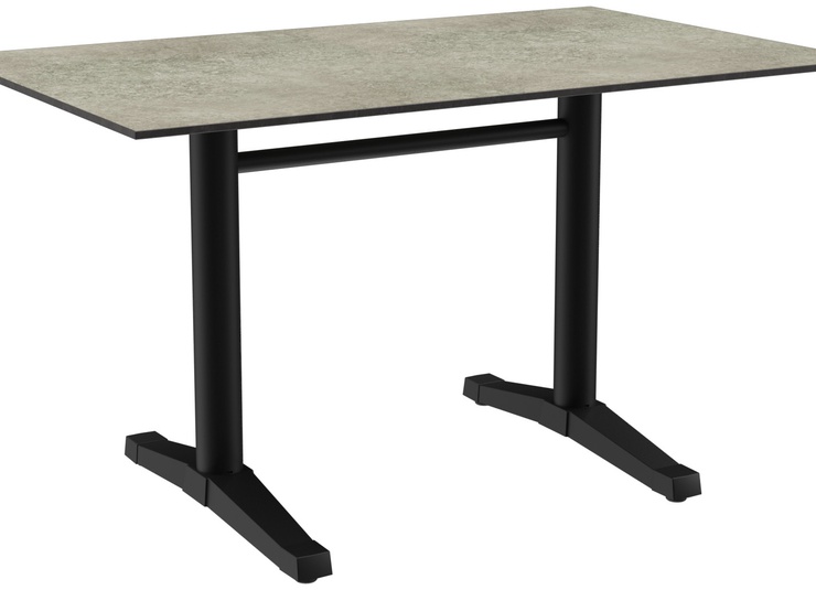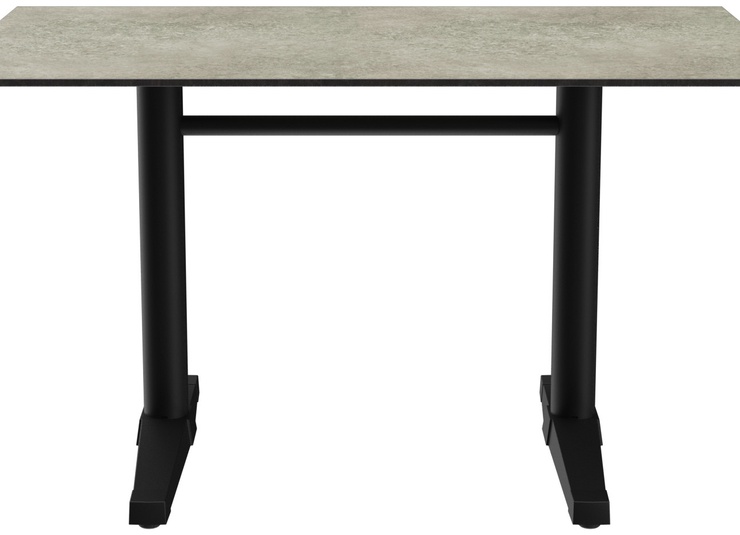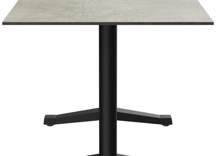 The table model Kata – suitable for both indoor and outdoor use – features a black powder-coated steel frame with a classic straight toe foot, which can be combined with various tabletops. It is available in dining table height, with FLAT technology or adjustable floor gliders, and can additionally be equipped with a tilting mechanism for space-saving storage. The hydraulically mounted floor gliders of the FLAT system automatically adapt perfectly to uneven floors, meaning you can say goodbye to wobbly tables for good! The patented system immediately responds to the surface when the table is placed, ensuring a stable stand.- Highly weather-resistant and easy to maintain due to powder coating
