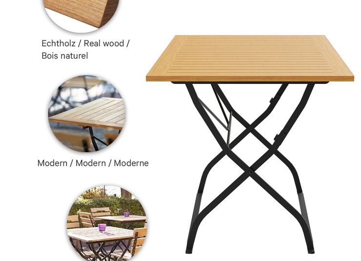 The Vigo T beer garden table is made of pre-treated robinia wood and galvanised, black, powder-coated steel. It is available in a range of shapes and sizes. It can be folded together for compact storage.Product Code