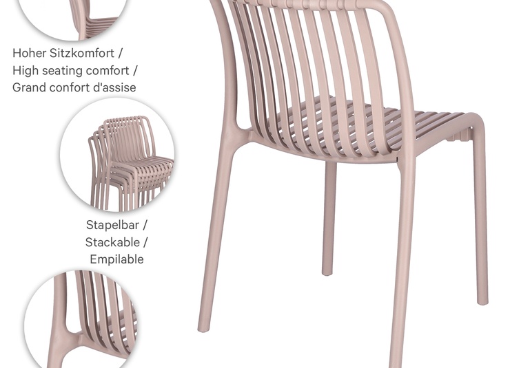 Elexia – Versatility meets modern design. Available as a chair, armchair, lounge chair, and 2-seater: the fiberglass-reinforced polypropylene series is durable, lightweight, and perfect for system catering. The elegant slatted design not only adds style but also gently adapts to the body for optimal comfort. Available in two colors, and fully stackable, Elexia combines functionality with timeless aesthetics. Ideal for both indoor and outdoor use.Product Code