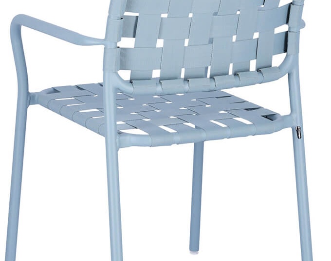 A real GO IN design masterpiece! The innovative weaving of the seat and backrest with wide straps gives the stackable Brigo armchair its special charm. The frame is made of powder-coated aluminum. The straps are made of polypropylene. Particularly practical: it is lightweight and offers a high level of seating comfort. Thanks to its stackability of up to four chairs, it can be stored quickly and easily to save space. Ideal for outdoor catering. The wicker chair is available in a wide range of colors. A seat cushion measuring 40 x 40 cm can be added as an option.Product Code