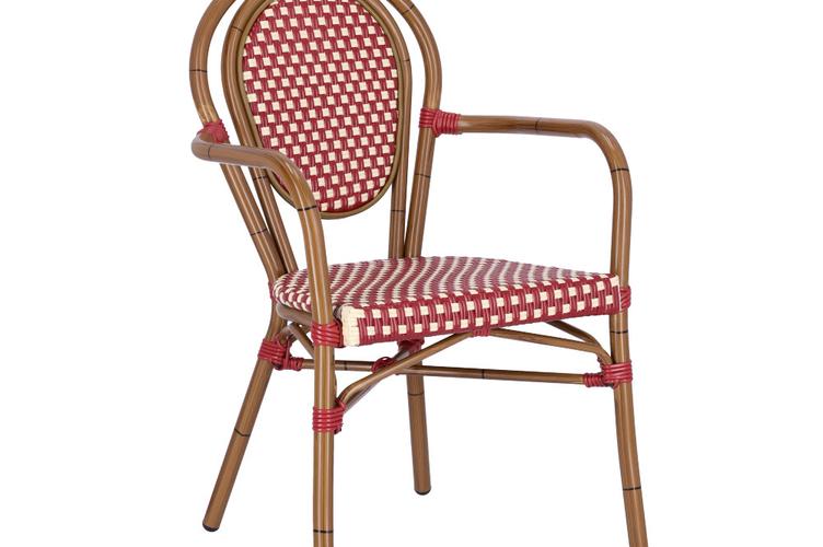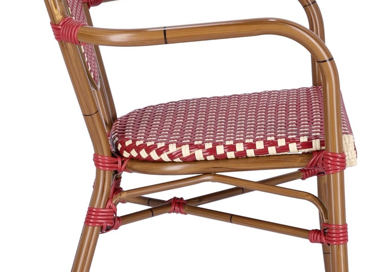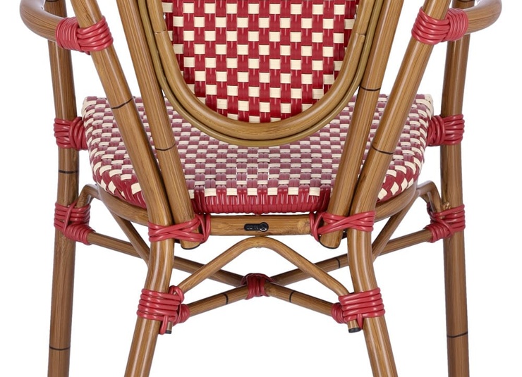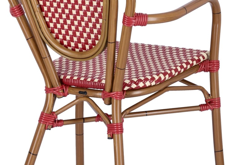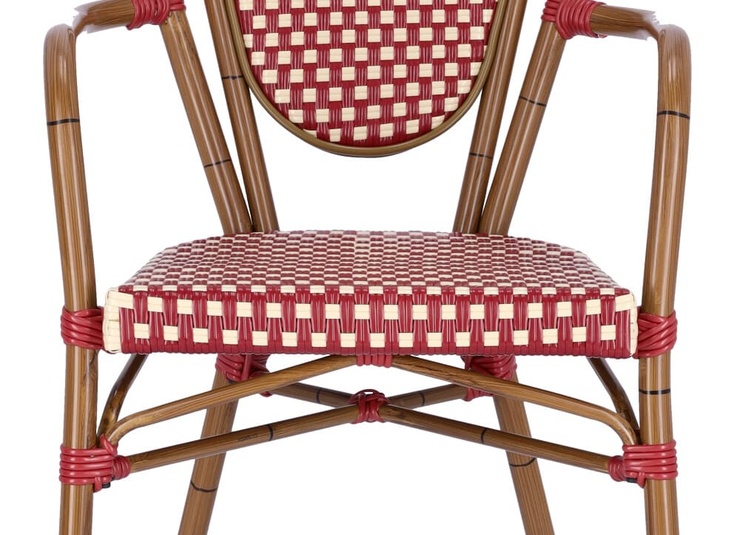 The stackable Marco model delivers Parisian brasserie flair at first glance – with its characteristic shape and harmonious color scheme, it immediately reads as a true café statement in hospitality settings. Designed for professional use, it impresses with strong value for money and materials that perform reliably both outdoors and indoors: rattan-look aluminum meets hand-woven nylon mesh. The weave does not absorb moisture, dries quickly and remains pleasantly easy to maintain. UV-resistant, weatherproof components ensure that Marco continues to look good even in sun, rain and high-traffic environments. Whether as a chair with or without armrests, a 2-seater bench at dining table height, an armchair or a 2-seater element at lounge height – Marco adapts flexibly to your concept. And because all versions are stackable, handling stays just as relaxed as the look.- Parisian flair: Brasserie look that attracts guests and keeps them seated longer