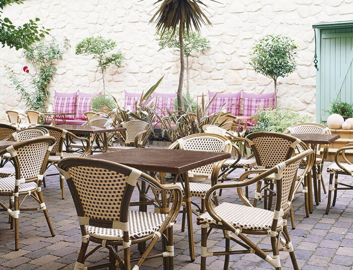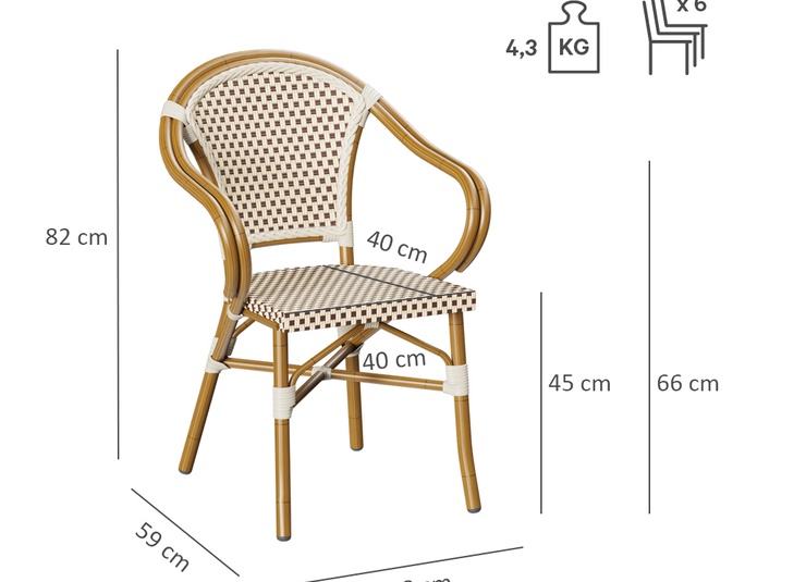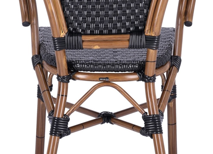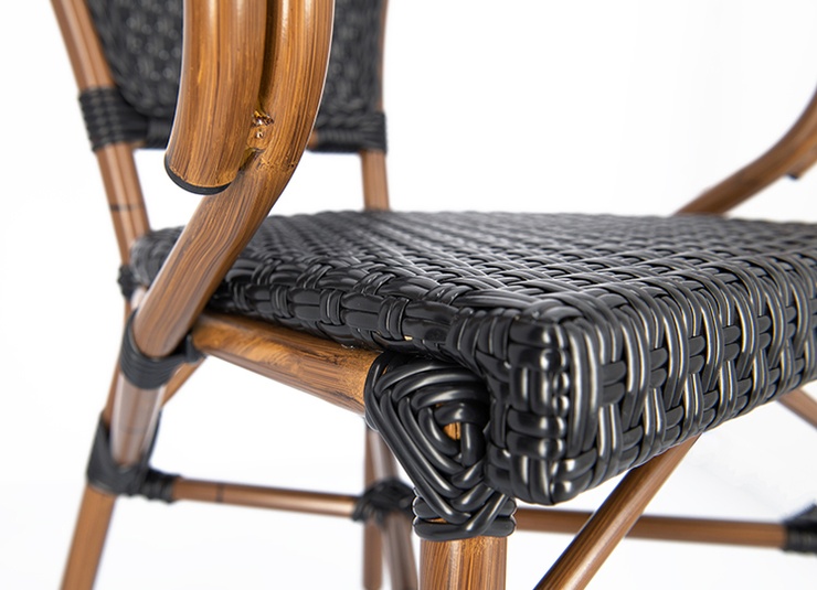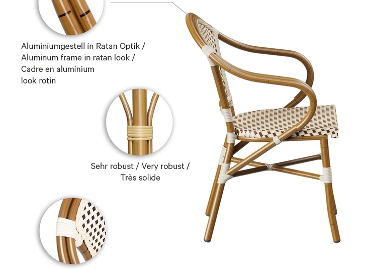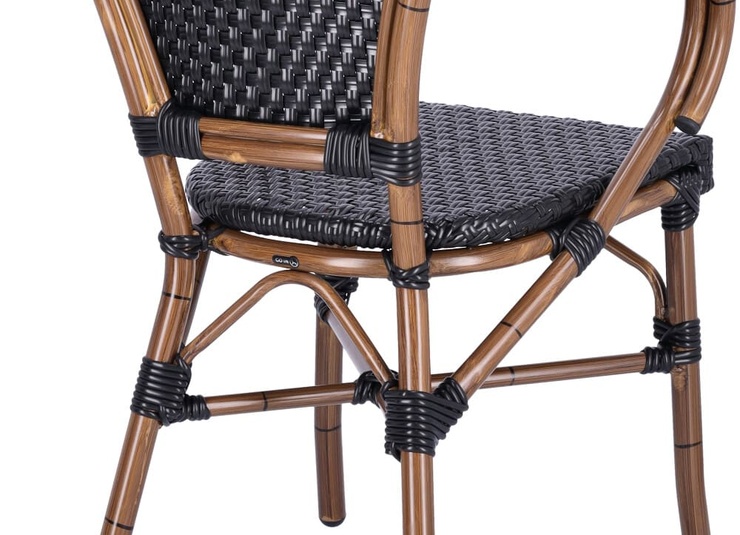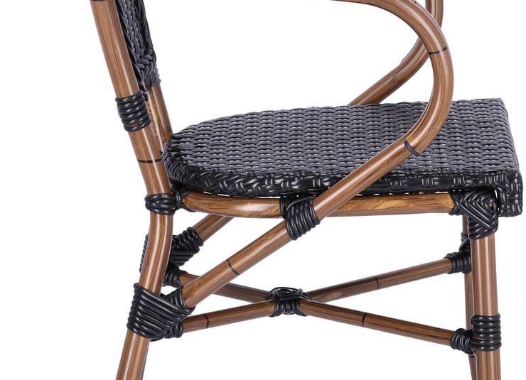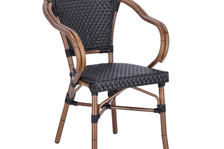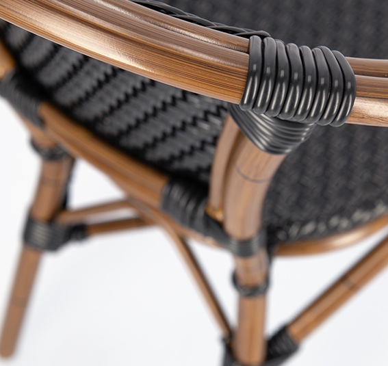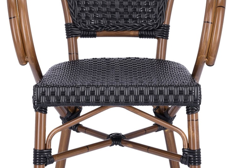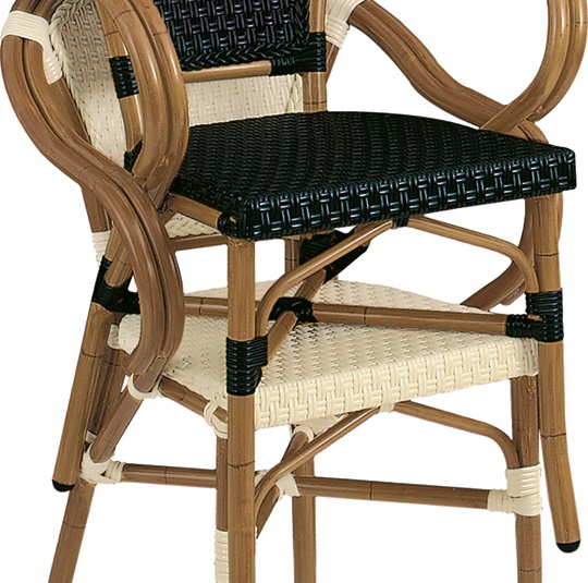 Morris with its curved armrests is also a classic brasserie chair. The model is very durable thanks to the rattan-effect aluminium and nylon wicker.Product Code