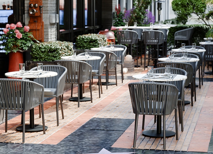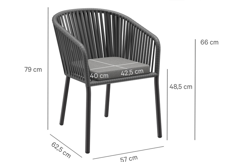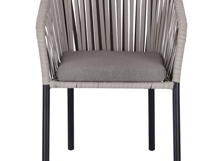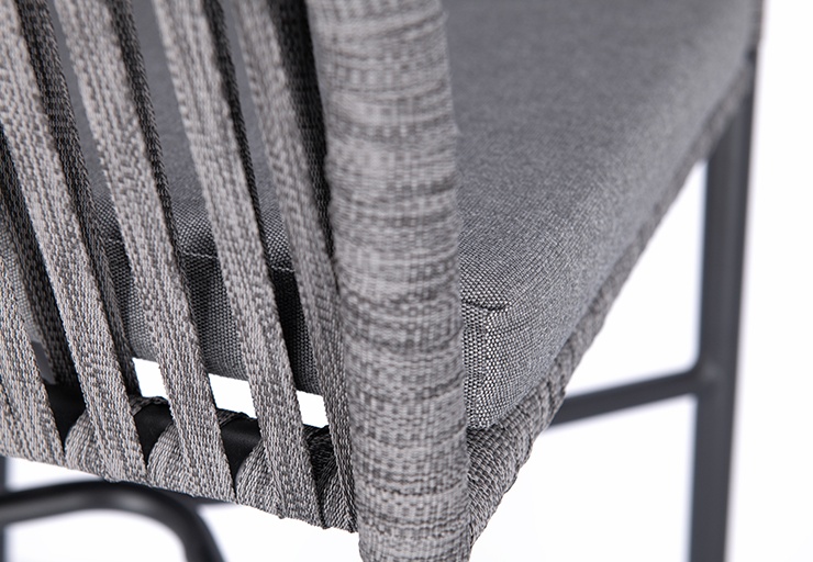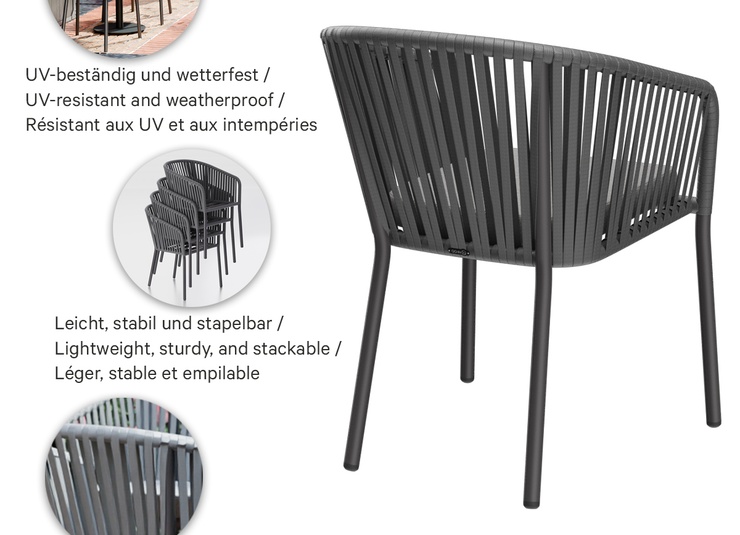 The stackable armchair Penya is designed for tough outdoor use: a powder-coated aluminum frame ensures low weight and high stability. The quick-drying weave does not absorb water, does not become saturated, and is ready for use immediately after rain. A matching seat cushion is included, providing comfortable seating for daily use. UV-resistant, weatherproof materials prevent fading and make the chair usable across seasons. The smooth surfaces are easy and quick to clean – ideal for terraces, beer gardens, or hotel pools. Available in two colors and also as a bar stool matching the same design.- Quick-drying weave that does not absorb water and is immediately usable after rain