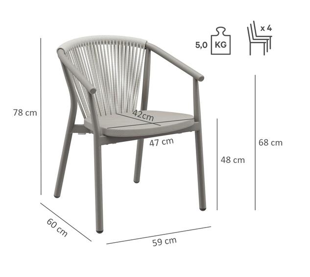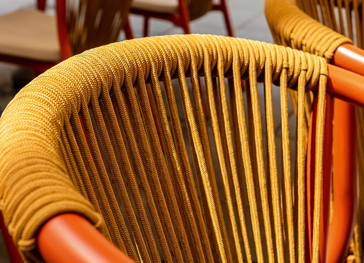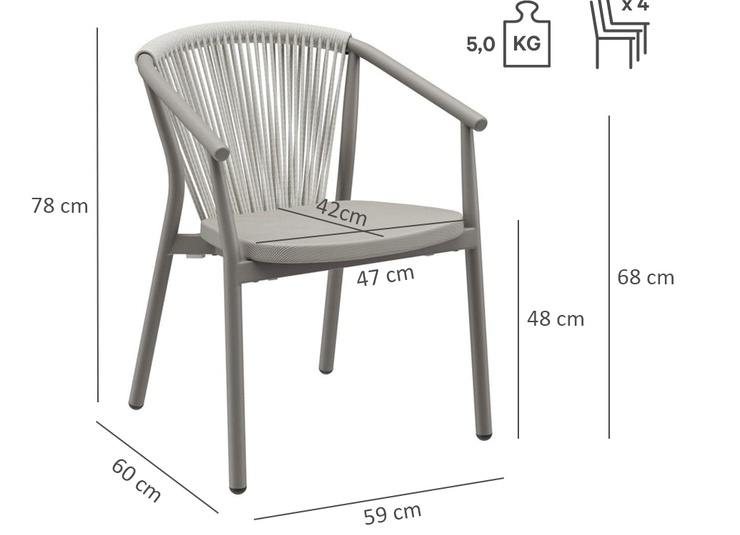 - Quick-drying Textilene seat and rope-weave back that do not absorb water.